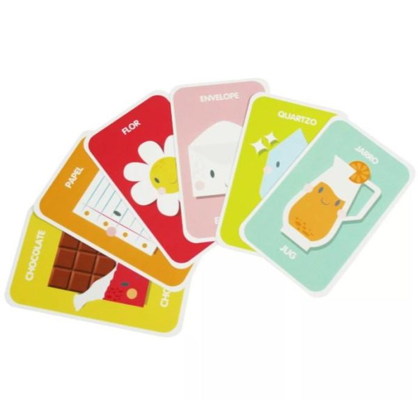 São 35 cartas que te apresentam as letras do alfabeto, com duas palavras, uma em inglês e outra em português, uma adorável ilustração, e, claro, a letra em questão. E como são Cartas Bilingue – Alfabeto e Números, não podem faltar os números, também em português e inglês, com chamativos fundos coloridos.