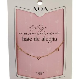 Pulseira de Aço Dourado "Contigo o Meu Coração Bate de Alegria" - Noa Story