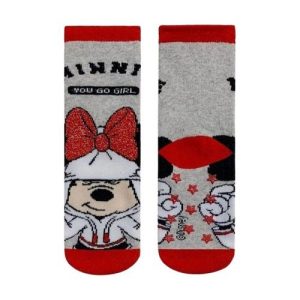 Meias Anti-derrapantes Cinzentas c/Minnie e laço brilhante T:23/26 - Minnie