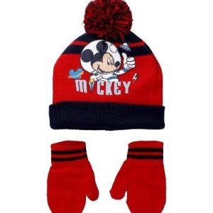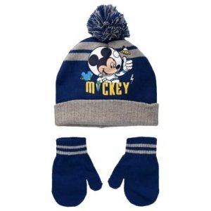 Conjunto de Gorro com Pompom e Luvas Azul com Riscas e Vermelho - Mickey