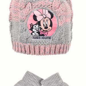 Conj. Infantil Gorro + Luvas Cinza e Rosa "Minnie e Fígaro" - Tam. 50 - Minnie