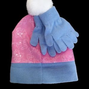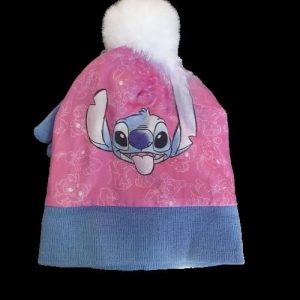 Conjunto Gorro Rosa e Luvas Azuis C/ Pompom Branco "Stitch" (T52) - Lilo & Stitch