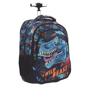 Trolley Escolar Azul e Laranja "Wild Beast" - Dinossauros