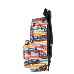 Mochila Escolar Branca com Riscas e Folhas e Bolso Frontal - Malawi - Perona