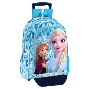 Mochila Escolar Com Trolley Cor Azul Com Elsa e Frozen Em 3D - Frozen