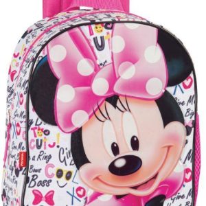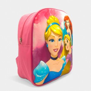 Mochila Cor Rosa com Cinderela 3D, Ariel e Rapunzel - Princesas Disney