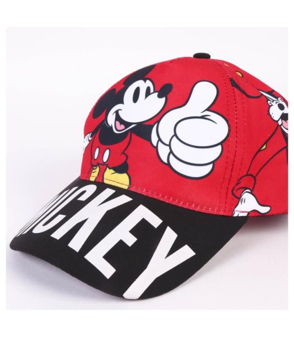 Boné ajustável vermelho com Mickey, Pateta e Pluto nas laterais, para um visual divertido e cómodo.
