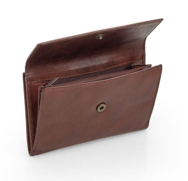 Carteira Delbag Média Castanha em Pele c/ Mola e além disso com muitas arrumações.