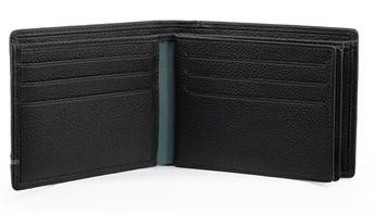 Carteira de pele preta com linha verde: espaço generoso para notas, cartões e moedas – edição oficial SCP.