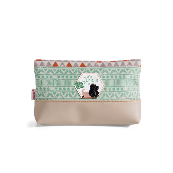 Estojinho dobrável com padrão de triângulos, compacto (23 x 15 cm) e fácil de limpar.