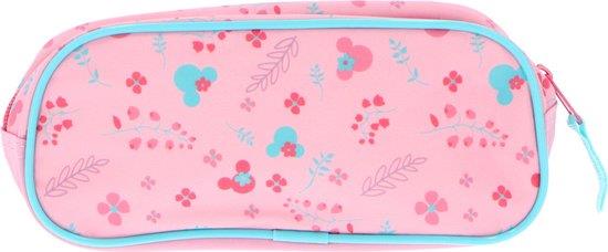 Estojo escolar rosa com Minnie: compacto, prático e com espaço para todo o material de escrita.