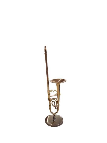 Miniatura Trombone de Varas 1/6 14,3cm, muito original e a sua pintura é detalhada em dourado. Contém a base de suporte e além disso com música.