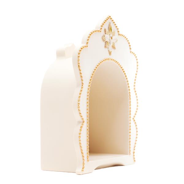 Resin oratory with a golden dove and cross, hand-painted, ideal for devotional spaces.
