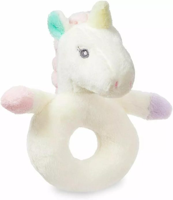 Um unicórnio de peluche encantador, perfeito para aconchegar o bebé, com detalhes cuidadosos pela Aurora.