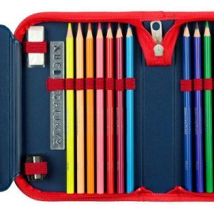 Spiderman - Estojo Vertical Preto e Vermelho + 2 Canetas de Gel