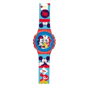 Relógio Digital Rosa e Azul com Flores - Minnie