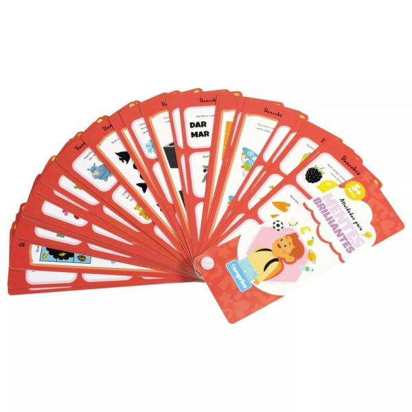 54 cartas com enigmas, leitura, matemática e jogos de lógica para estimular memória e raciocínio em crianças a partir dos 5 anos.