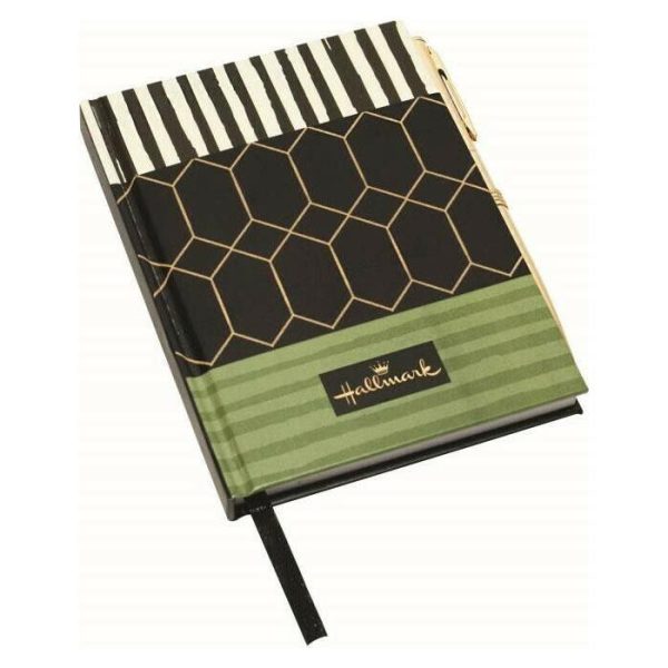 Bloco de Notas A6 com Caneta Preto c/ Riscas Brancas e Dourado – Hallmark