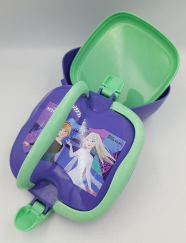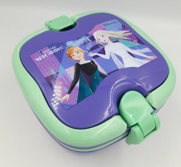 Caixa de sandes com trinco, prática para o dia a dia (15 x 15 x 9 cm), com design Frozen II.