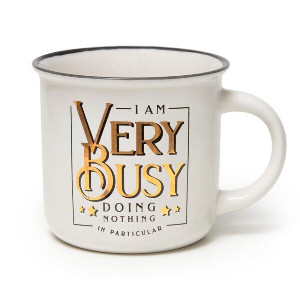 Caneca em cerâmica de 360 ml com o tema Very Busy – perfeita para café diário ou como presente criativo.