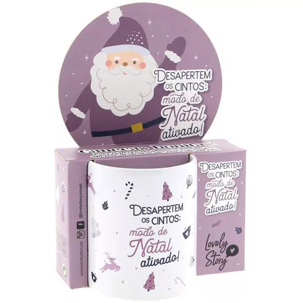 Caneca Natal “Desapertem Os Cintos: Modo de Natal Ativado!” – Lovely Story, com um design super amoroso e divertido para oferecer a quem nos é especial na época mais querida de todas, “O Natal”, presenteie quem você ama ou adicione um toque festivo à sua coleção.