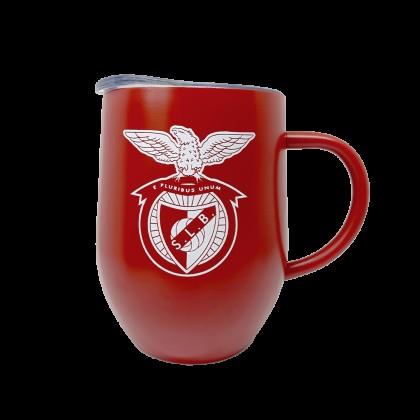 Caneca térmica de alumínio do Benfica, vermelha e com o emblema oficial, ideal para manter bebidas na temperatura certa.