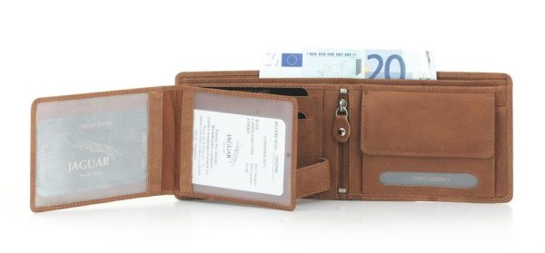 Carteira c/ porta-moedas Pele Vaca Americana Castanho Claro – Jaguar, com porta-moedas , vários compartimentos para cartões e além disso o seu material é de qualidade, feito de couro genuíno.