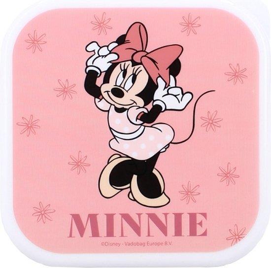 Estas alegres caixas Sandwicheiras da Minnie Mouse são ideais para levar um snack para qualquer lugar. São 3 caixas Sandwicheiras de tamanhos diferentes. Além disso, cada caixa Sandwicheiras apresenta um bonito estampado da Minnie Mouse. Todas as caixas são cor-de-rosa e fecham com segurança. Finalmente, encaixam facilmente para um armazenamento conveniente