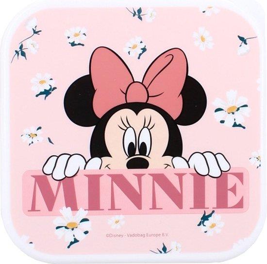 Trio de caixas Sandwicheiras da Minnie com estampado primaveril, ideal para levar lanches com estilo.