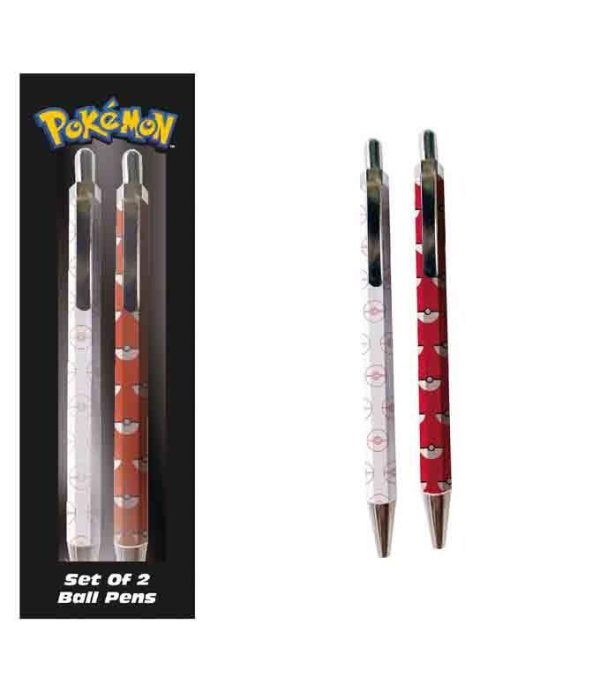 Conjunto de Esferográficas Branca e Vermelha Pokemon c/ Pokebolas em caixa – Pokémon