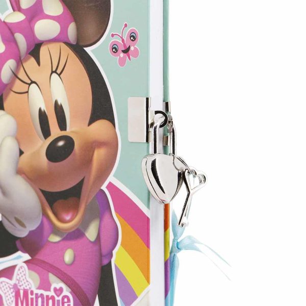 Diário Minnie com capa dura, cadeado e caneta Rainbow — 160 páginas decoradas para registar o dia a dia com estilo.