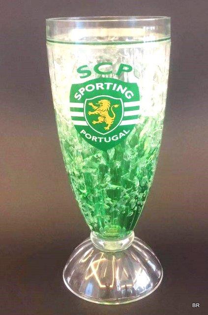 Copo Plástico Sporting Efeito Gelo – SCP com gel térmico que mantém o fresco das bebidas e além disso muito original.