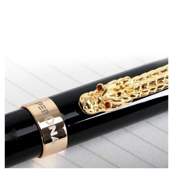 Esferográfica Preta c/ Dragão Dourado Roller – Perona