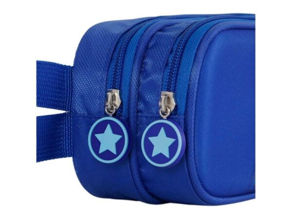 Estojinho oval em azul 3D com o rosto do Sonic, para lápis e acessórios.