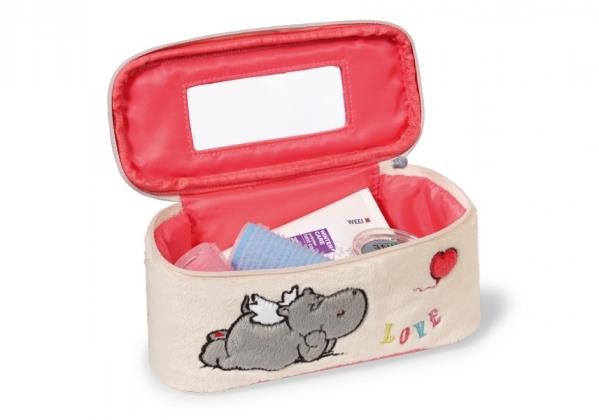 Estojo para Maquilhagem Nici Hipopótamo Love. Estojo com espelho interior, oferta ideal para o Dia dos Namorados e além disso em peluche lavável à superfície.