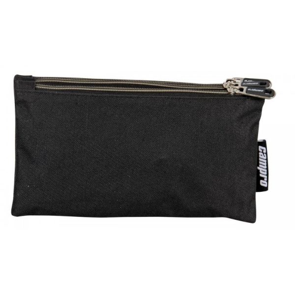 Estojinho triplo com fecho, três compartimentos e cores vivas, para organização com estilo.