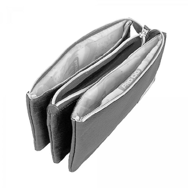 Estojo Triplo Pro DG Cinzento bastante espaçoso e além disso com três compartimentos separados.