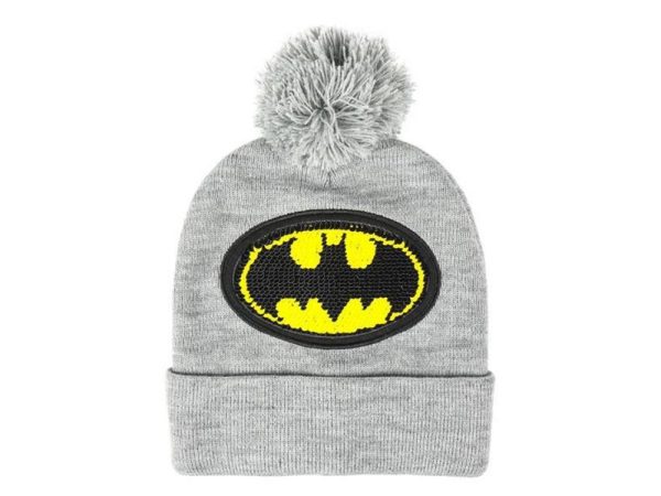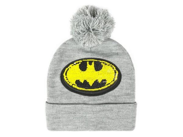 Gorro Cinzento c/ Símbolo em Lantejoulas e Pompom – Batman