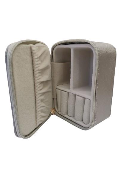 Guarda joias de viagem com múltiplos compartimentos para manter as peças seguras e organizadas.