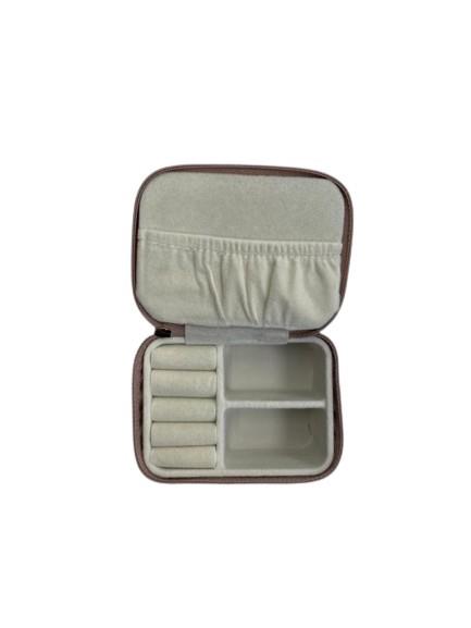 Organizador de joias de viagem elegante e prático, com múltiplos compartimentos para manter tudo em ordem.
