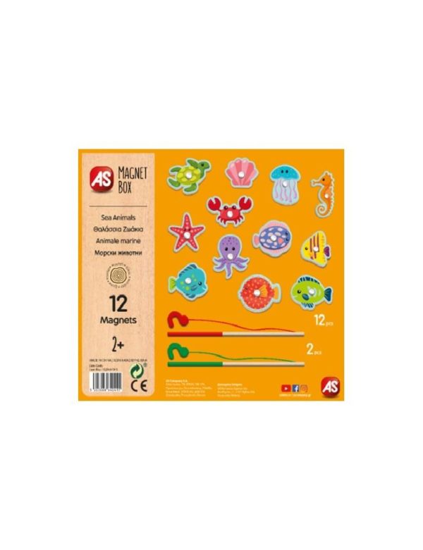 Jogo Magnet Box Madeira Animais Marinhos Íman para pescar o máximo de animais marinhos que conseguir com duas canas de pesca com íman e além disso a partir dos 3 anos.