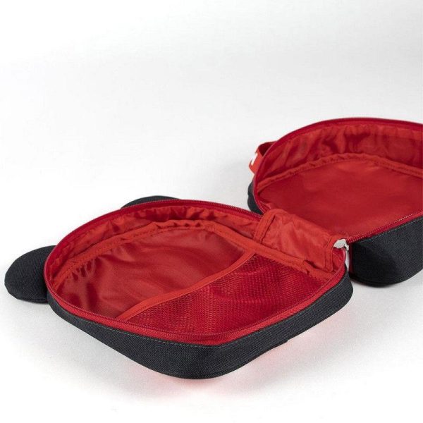 Lancheira 3D Preta e Vermelha com Orelhas e Pega Vermelha – Mickey