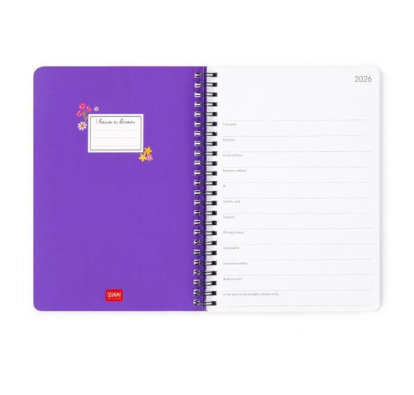 Organiza o teu dia-a-dia com a fantástica agenda 2026 temática flores da Legami.
