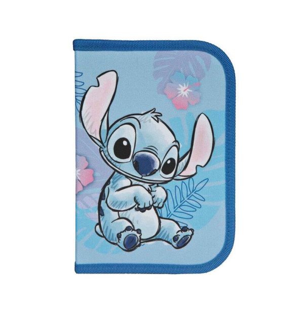 Estojo temático com Lilo & Stitch, perfeito para estimular a criatividade escolar com materiais coloridos.