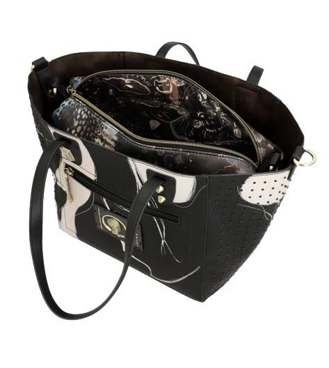 Mala de Ombro Média “Shoen” – Anekke – Esta bolsa grande preta é um perfeito 2 em 1, o que lhe permitirá usá-la todos os dias como preferir. O exterior é uma grande sacola de compras, cujo interior inclui uma sacola removível. O shopper tem duas alças, mas você também pode adicionar uma alça ajustável de diferentes comprimentos. Você também pode adicionar esta bolsa de ombro à bolsa que serve de forro interno, assim você terá 2 bolsas em 1 além disso interior da bolsa é forrado.