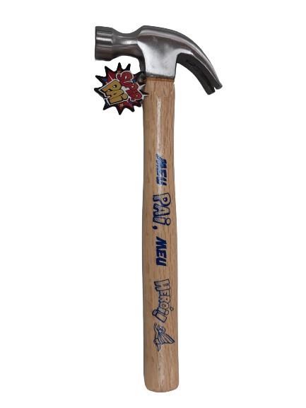 Martelo “Pai, meu herói” – Pai, com cabo em madeira, ideal para oferecer no Dia do Pai e bastante original.
