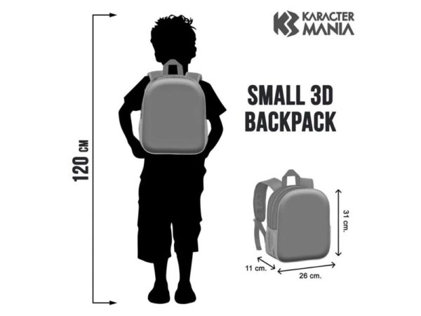 Mochila pré-escolar com frente em relevo 3D.