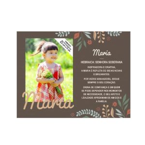 Moldura personalizada com o nome da pessoa especial, que ganha vida e revela o significado de cada letra.