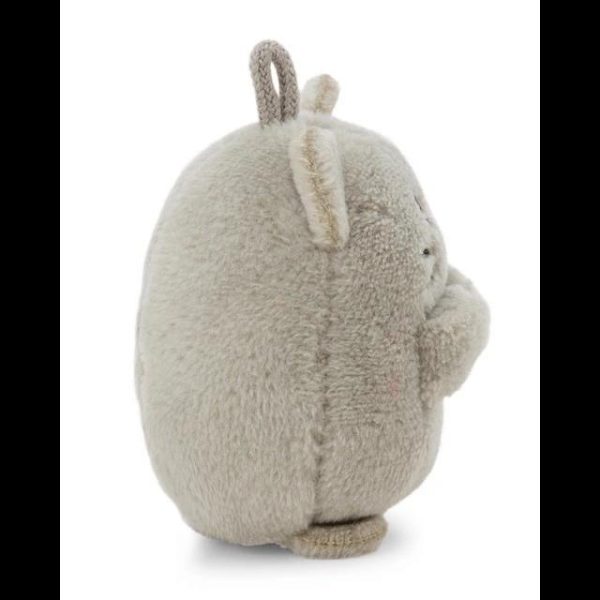 Mini peluche NICI em cinza, 5 cm, com header – uma lembrança fofinha e elegante.