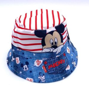 Panamá Branco Riscas Vermelhas e Imitação Jeans (48) – Mickey, ideal para os quentes dias de verão e além disso o seu padrão é muito original.